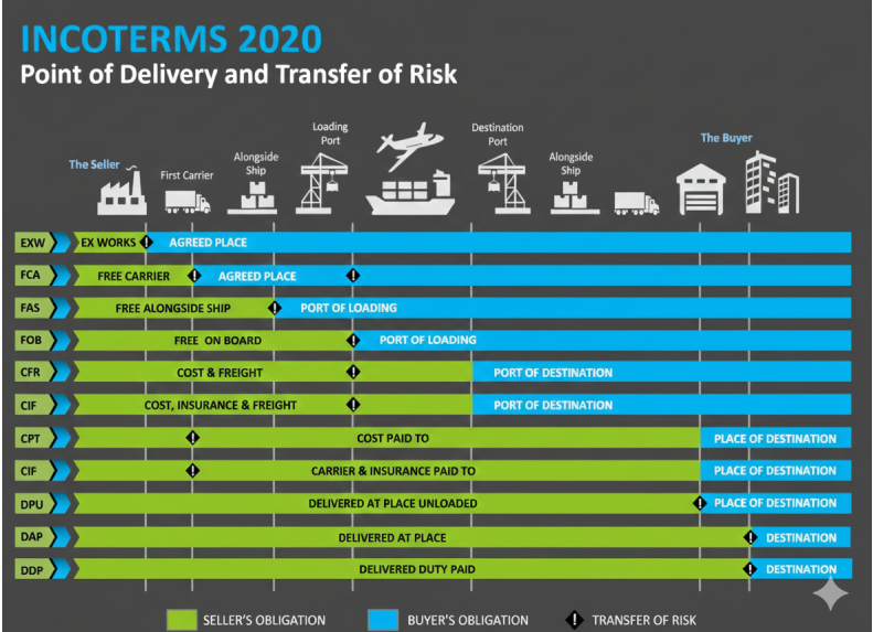 Incoterms define clear rules for shipping, outlining who handles costs, transport, and risk at every stage of the journey.